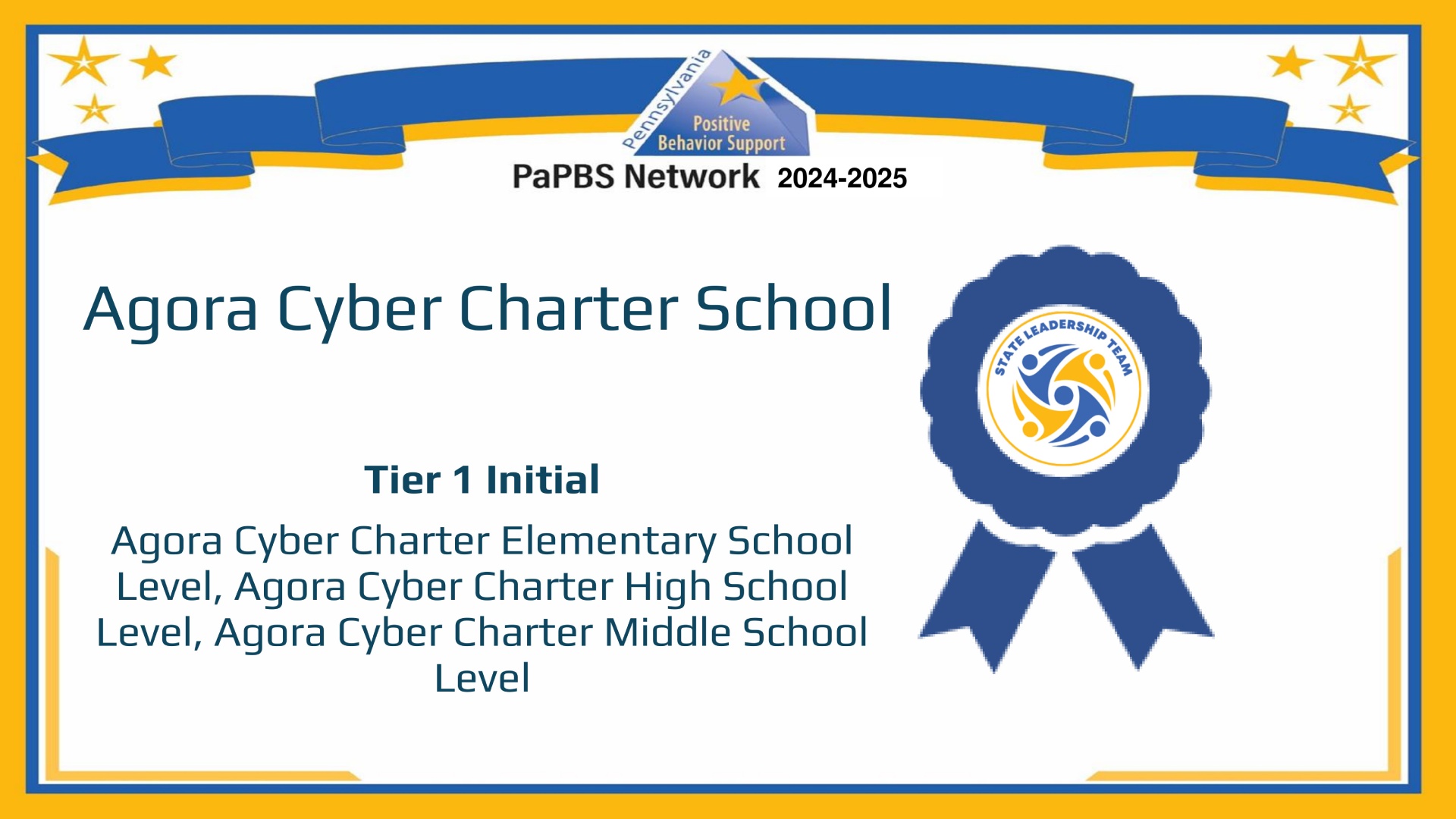 PBIS (Positive Behavior Interventions and Supports) is an evidence based framework used in Agora Cyber Charter School to improve both academic and behavioral outcomes for all students. According to the TFI (Tiered Fidelity Inventory), a measure of the effectiveness in implementation, Agora grade bands have all exceeded the percentage needed to be recognized by the State of Pennsylvania (70%). Agora is effectively implementing and sustaining PBIA as a Tier 1 framework across K-12.